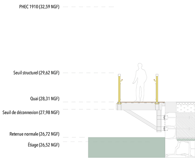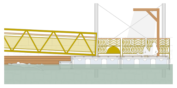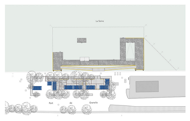 Die Herausforderungen an das Projekt “Baignade en Seine de Grenelle” waren durchaus beachtlich, denn es ging um den Bau einer vollständig demontierbaren, schwimmenden Badeanstalt für 300 Personen, die sich den ständig wechselnden Wasserständen der Seine anpassen muss. Das Ergebnis ist ein 950 m² großer, 60 Meter langer Schwimmbereich mit einer 415 m² großen schwimmenden Plattform und 480 m² Landanlagen.